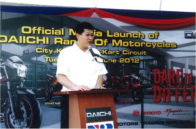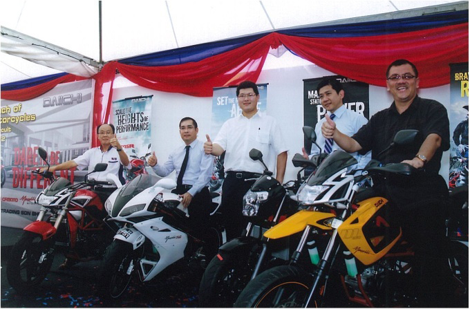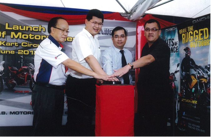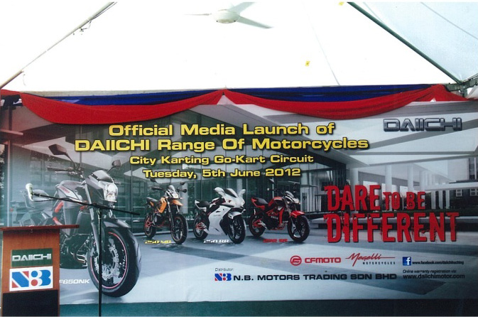 Year 2012 was a big and busiest year for NB Motor with the launching of new DAIICHI motorbike named CF Moto (650cc) and Megelli (250cc). NB Motor Trading make an official media launch of the new model at Go-Kart Circuit, Kuala Lumpur on June 5th. The launching event was attended by NB Motor Trading General Manager Johnie Ngu and the sales manager Edward Lee. The invited VIP AEON Finance Joseph Chong and Head of Business Group Mr. Chen also attend to officiate the launching ceremony.